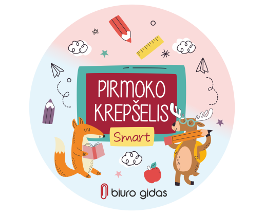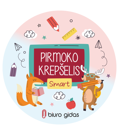 Krepšelis pirmokui! Rinkinį SMART sudaro būtiniausios kanceliarinės prekės.