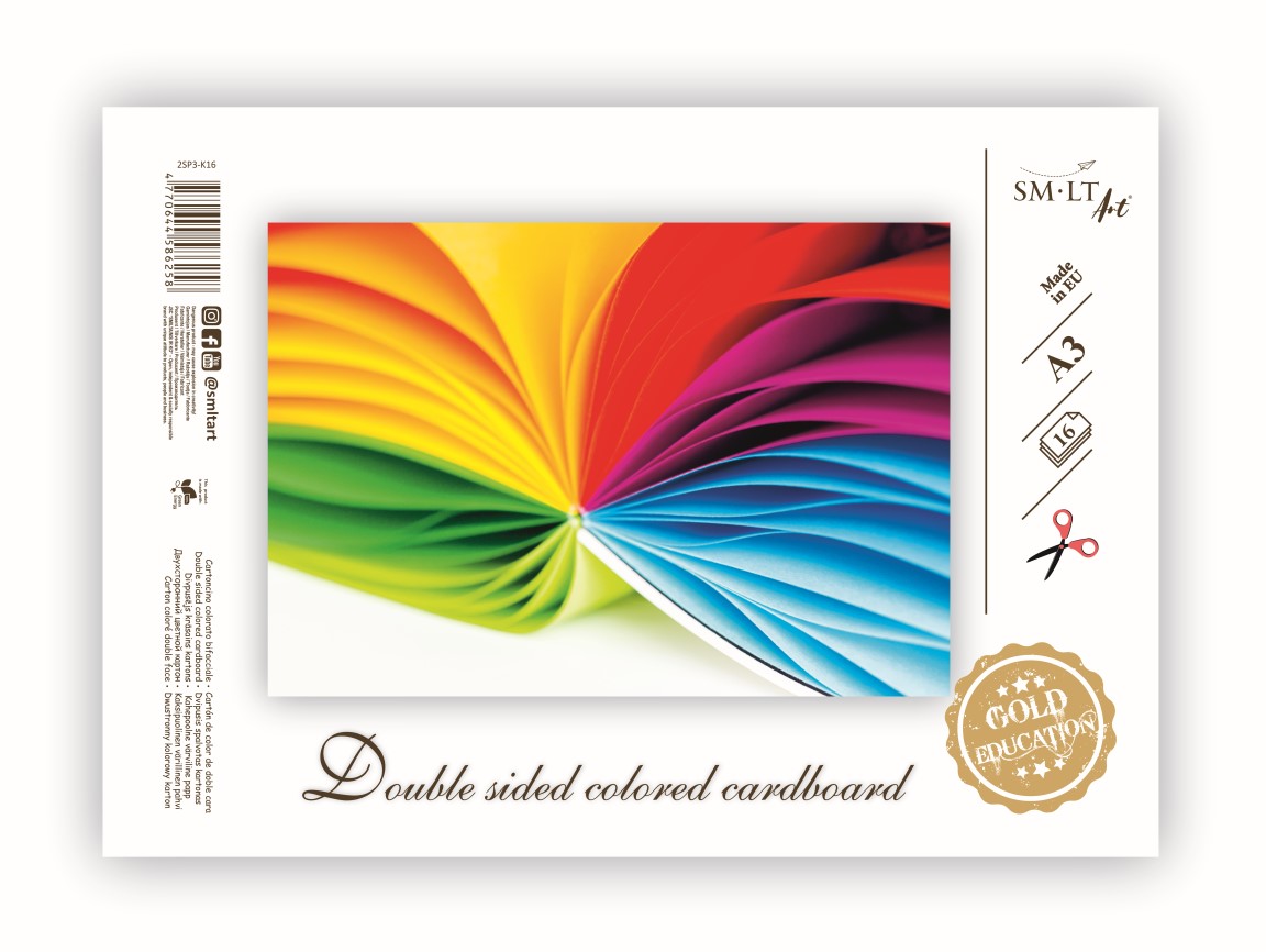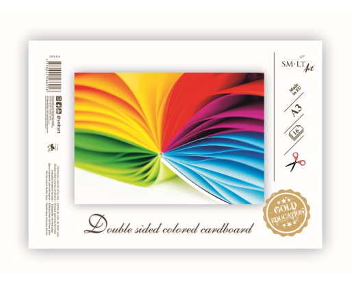 - Dvipusis spalvotas kartonas SMLT, A3, 190 g/m2, 16 lapų (8 spalvų)