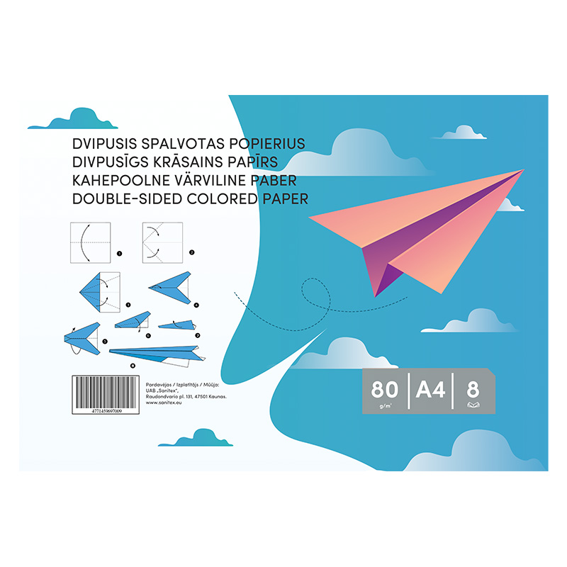 - Dvipusis spalvotas popierius , dvipusis, 8 lapai, 80 g/m²