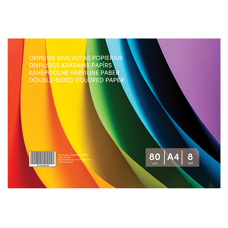 - Dvipusis spalvotas popierius , dvipusis, 8 lapai, 80 g/m²