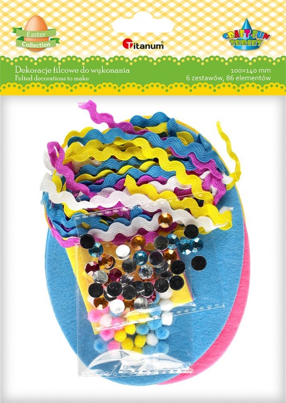 - Dekoracija filco rinkinys Vėlykoms "Išmargink kiaušinį" 6vnt. 10x14cm 86 detalės TITANUM