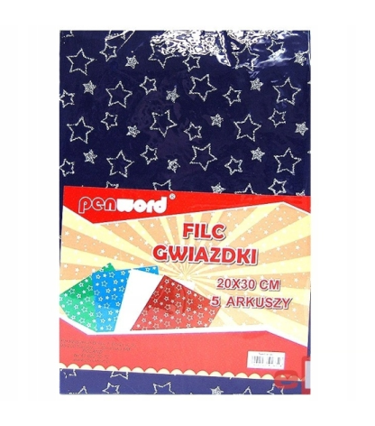 Filcas A4 5vnt., 2mm pilkas su žvaigždutėmis PENWORD