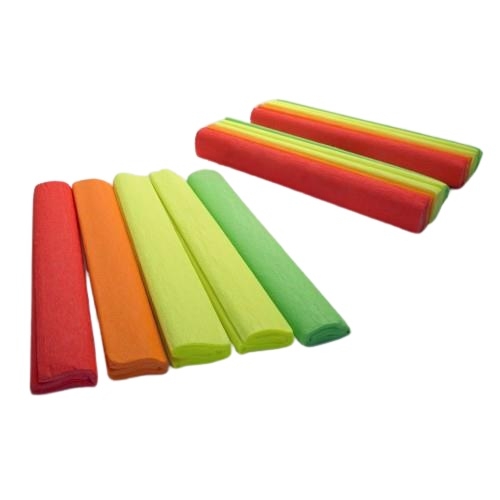 Popierius krepinis 25cm x 2m 5-ių neoninių spalvų rinkinys, Happy Color