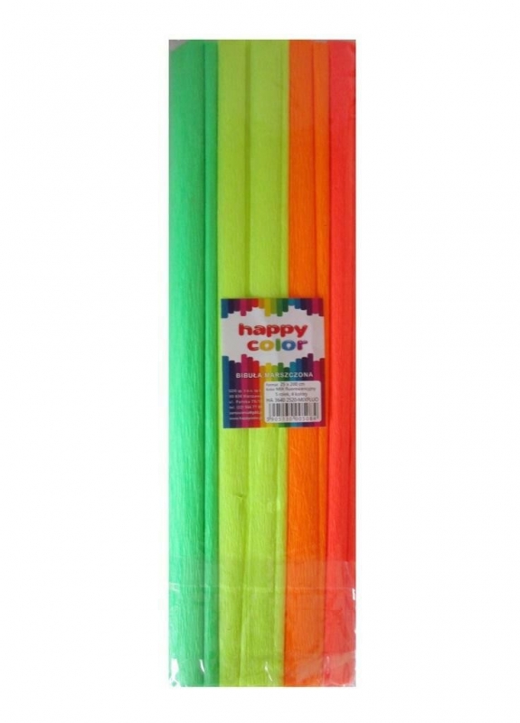 - Popierius krepinis 25cm x 2m 5-ių neoninių spalvų rinkinys, Happy Color