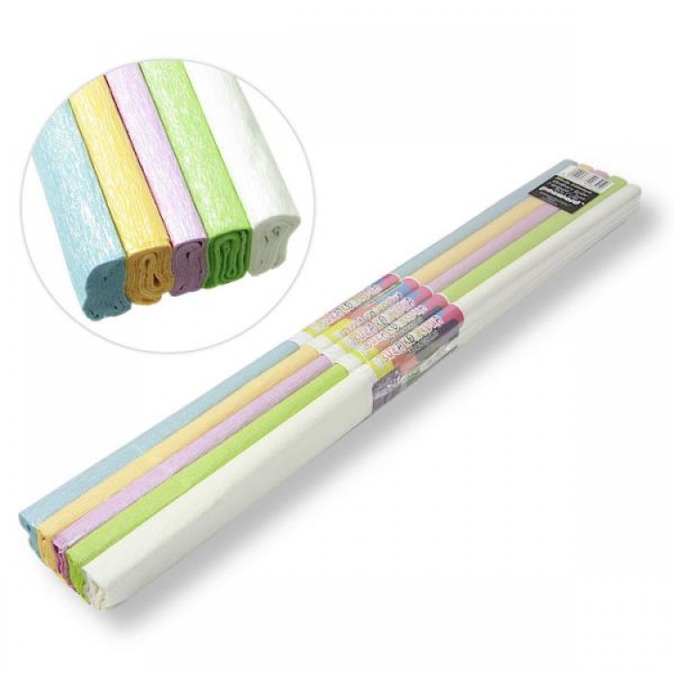 Krepinio popieriaus rinkinys Penword. 5pastelinės spalvos, 50x200cm.