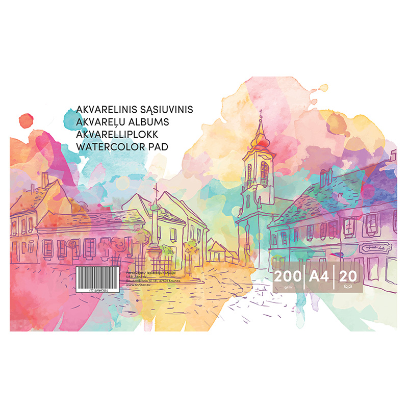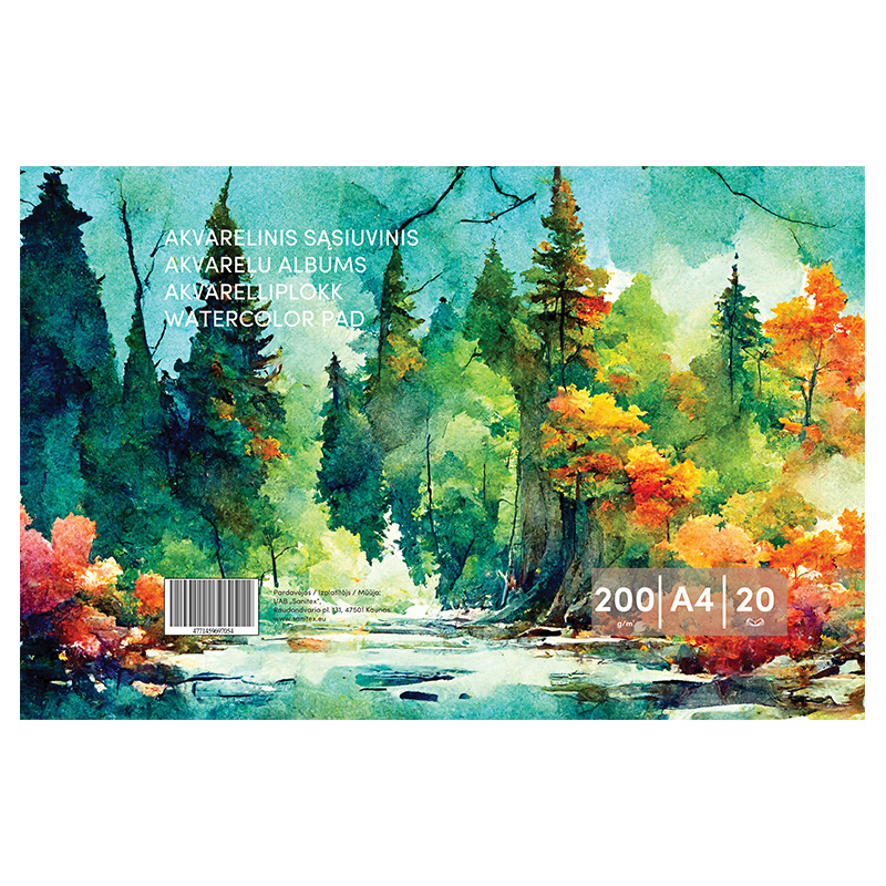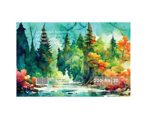 - Akvarelės sąsiuvinis, A4, 20 lapų, 200 g/m²