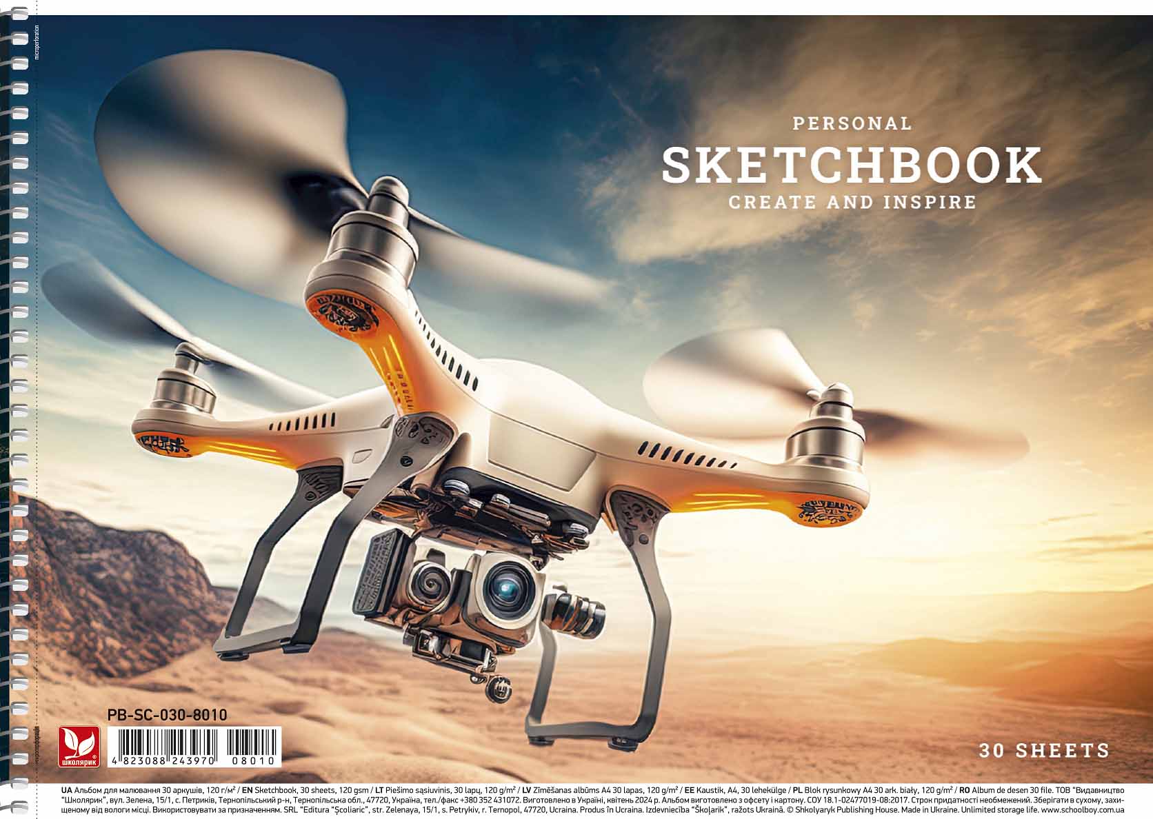 - Piešimo sąsiuvinis Schoolboy, A4, 30 lapų, 120 gsm
