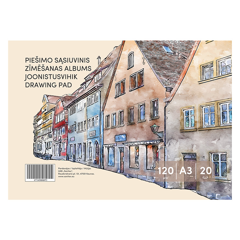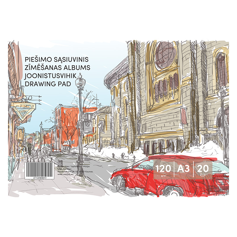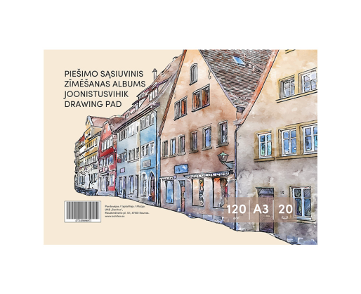 - Piešimo sąsiuvinis A3, 20 lapų ,120 g/m²