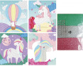 Putpgumės lipdukų 3D mozaikos rinkinys, tereikia atitinkamame kvadrate klijuoti tam tikros spalvos lipdukus ir darbas paruoštas. Mozaikos matmenys: 22×26 cm, rinkinį sudaro 4 raštai - vienaragiai