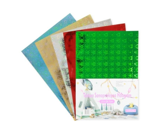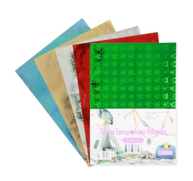 - Lipnus dekoretyvinis popierius PENWORD, A4 5 lapai, MIX Metallic Širdelės