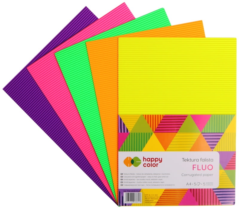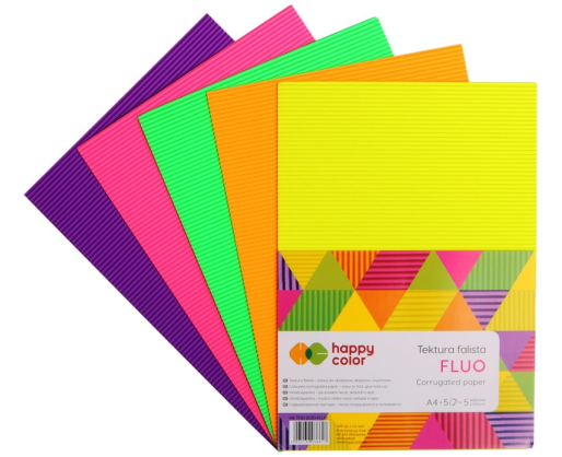 - Gofruoto kartono rinkinys HAPPY COLOR FLUO A4, 5 lapai