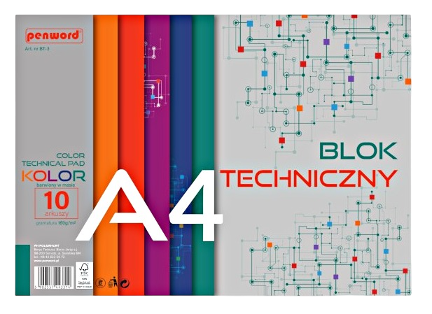 - Dvipusis spalvotas kartonas PENWORD BT-3, A4, 10l. , 180g/m2