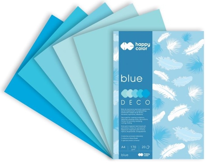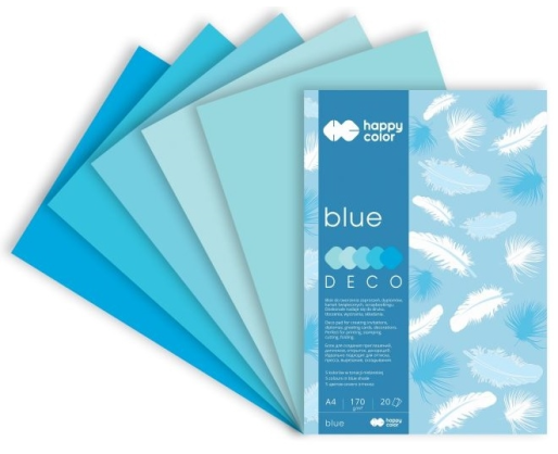 - Kartonas A4/20l.170g Deco BLUE (mėlynų atspalvių rink.) Happy Color