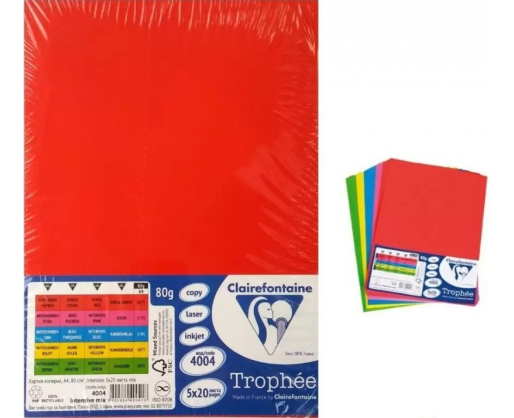 Popierius MIX A4/80g /100l. Clairefontaine 5sp.x20 ryškių spalvų