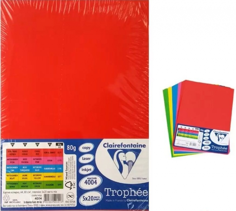 - Popierius MIX A4/80g /100l. Clairefontaine 5sp.x20 ryškių spalvų