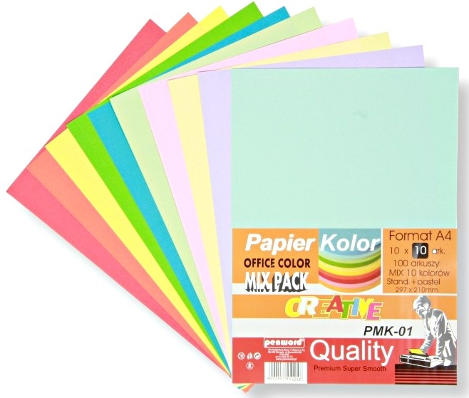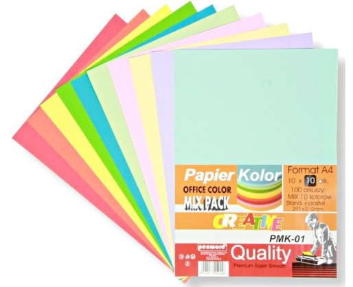 - Popierius MIX A4/80g/100l. PENWORD 10sp.x10, ryškių ir pastelinių spalvų rinkinys PMK-01