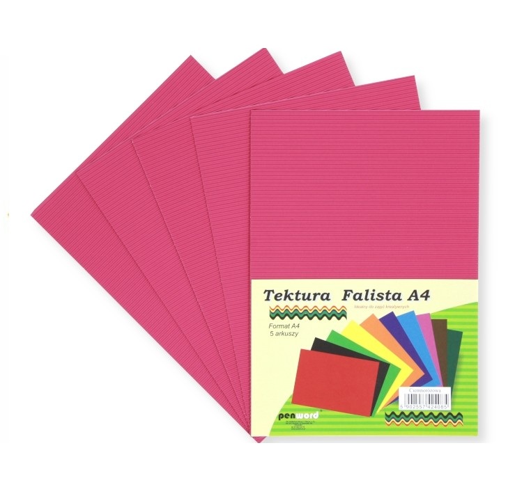 - Gofruotas kartonas PENWORD, A4 5 lapai, tamsiai rožinis