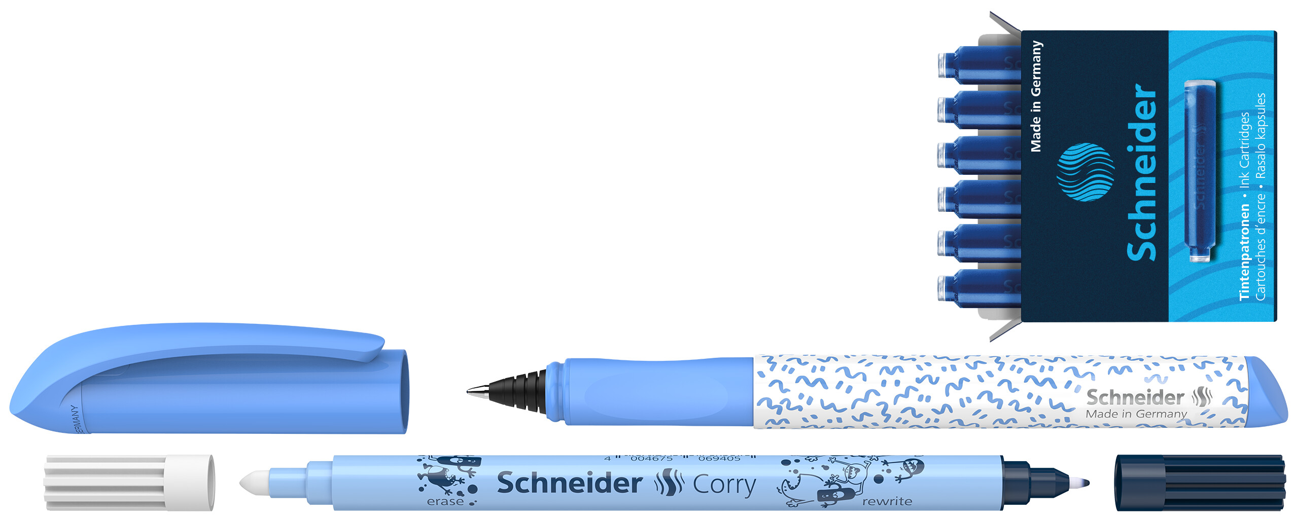 • Standartinės rašalo kapsulės, karališkos mėlynos, ištrinamos,