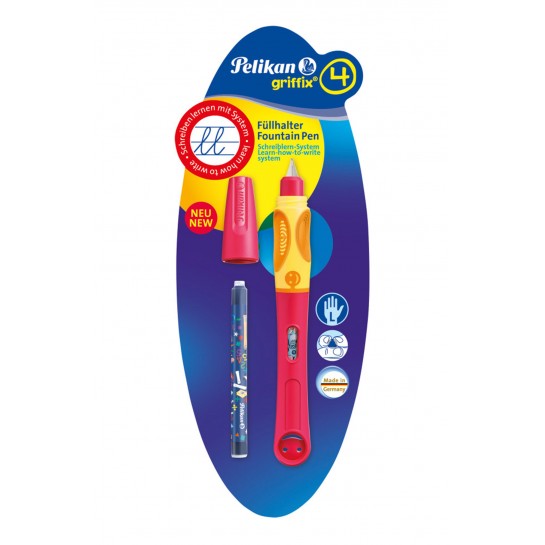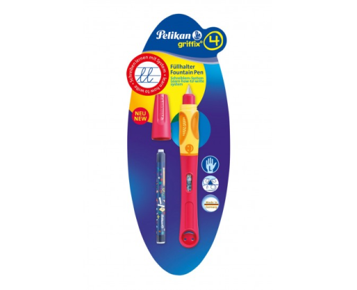 Plunksnakotis Pelikan Griffix-4, kairiarankiams, raudonas su geltona laikymo zona