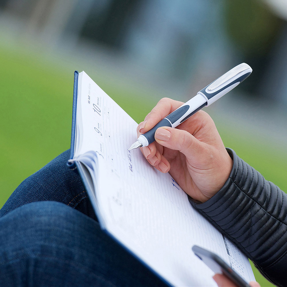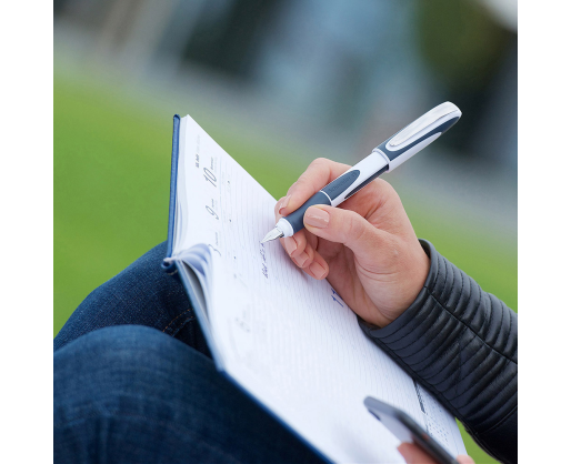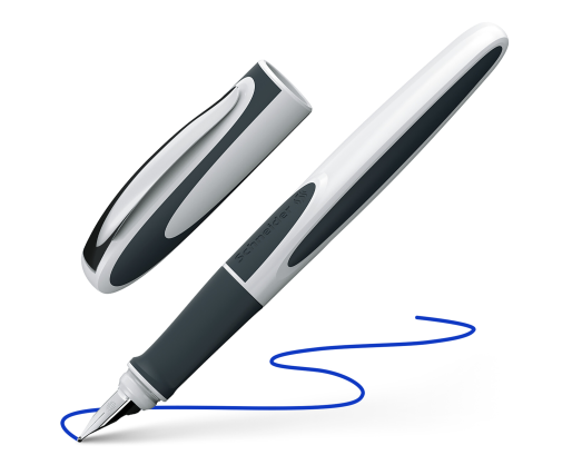 Plunksnakotis SCHNEIDER RAY kairiarankiams, baltas-tamsiai pilkas korpusas, mėlynas rašalas