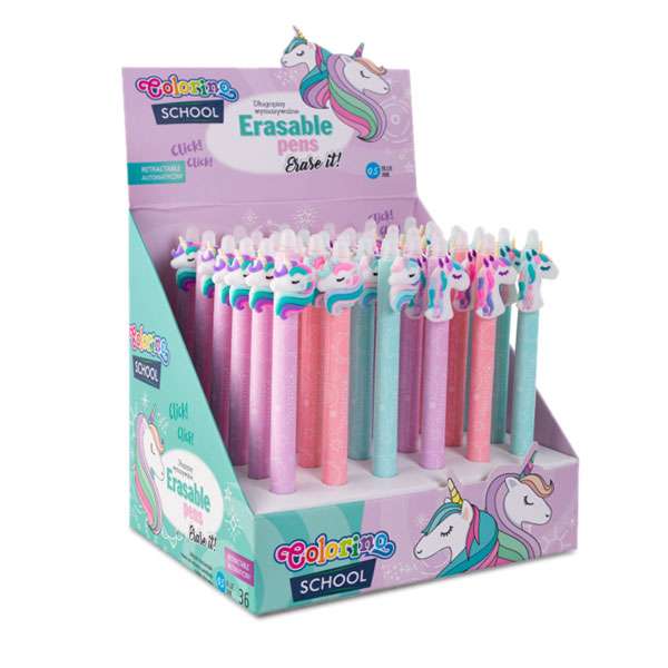 - Automatinis trinamas rašiklis COLORINO vienaragis, įvairių spalvų, 0,5 mm