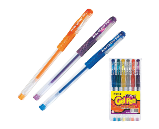 - Gelinis rašiklis PATIO GLITTER su blizgučiais, 6 spalvų rinkinys