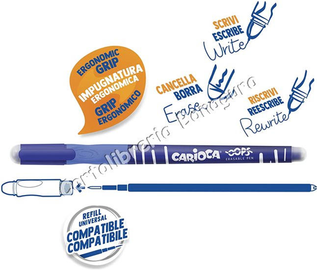 - Ištrinamas rašiklis CARIOCA OOPS Retractable, 0,7 mm, mėlynos spalvos, 1 vnt.