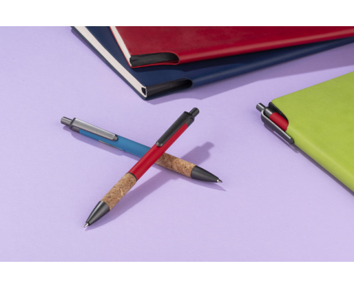 Tušinukas KUBOD BC19680-03 pagaminta iš aliuminio su su kamštine danga. Brėžio storis 1mm. Grafito spalvos apdaila pagaminta iš plastiko. Automatinis rašiklis. Mėlynas X20 pildymas. Išmatavimai 140 x ø 9 mm. Galima dėti reklaminį užrašą.
