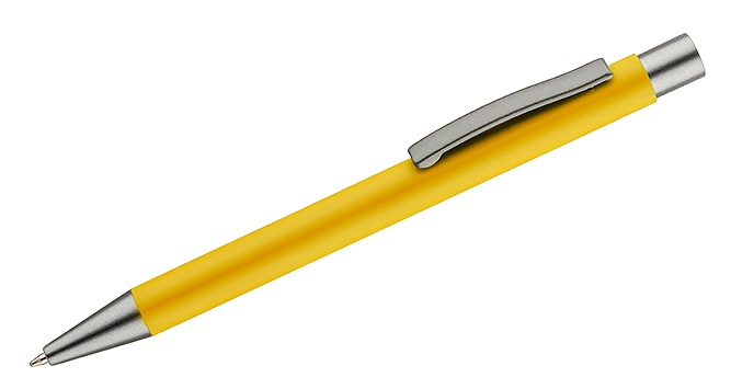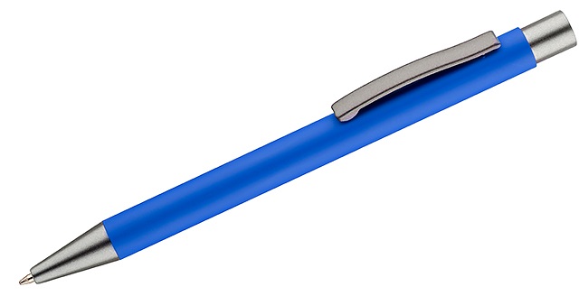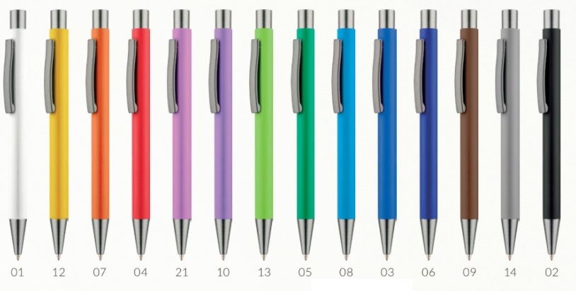 Tušinukas GOMA BC19617. Tušinukas metalinis, dengtas guma, matinis įvairių spalvų korpusas. Išmatavimai 136x10 mm. Keičiama šerdelė, mėlynos spalvos (prekės kodas 201-025), juodos spalvos (prekės kodas 201-026). Tinka dėti užrašą reklamai.