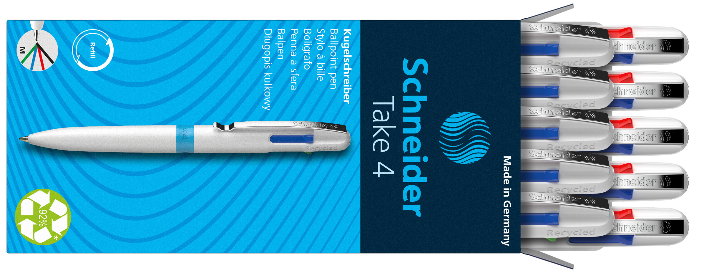 Tušinukas SCHNEIDER Take 4, baltas korpusas, 4 spalvos