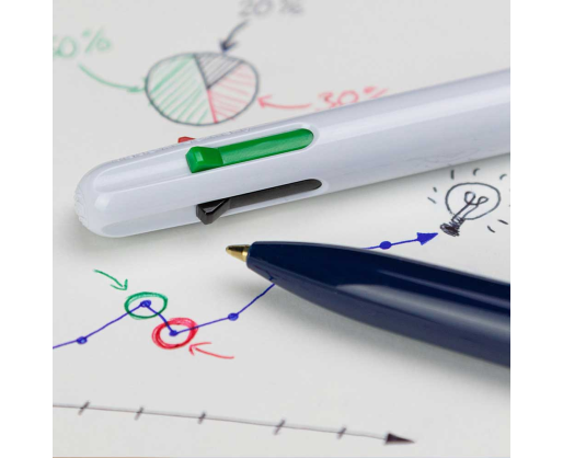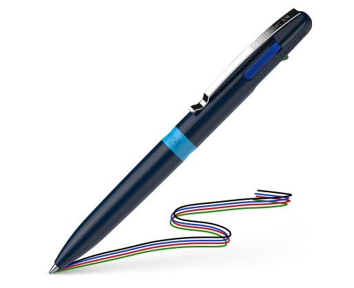 • Keturių spalvų tušinukas su juoda, raudona, mėlyna ir žalia šerdelėmis.