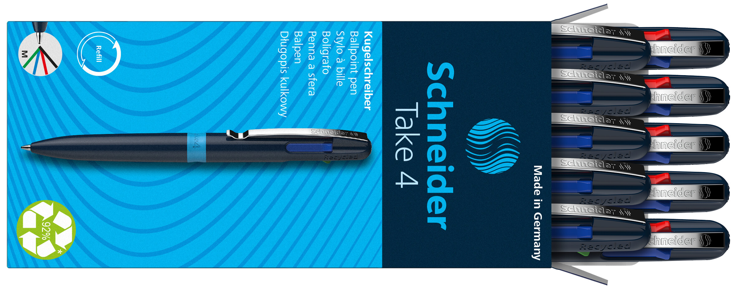- Tušinukas SCHNEIDER Take 4, tamsiai mėlynas korpusas, 4 spalvos