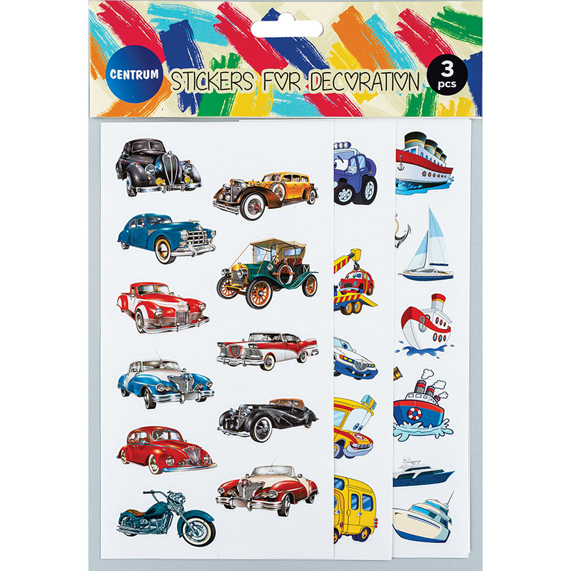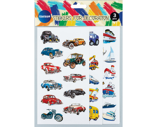 - Dekoratyviniai lipdukai CENTRUM „CARS“ 190x100mm, 3 lapai, 80734