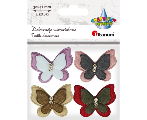 - Tekstilinė dekoracija "Drugeliai", 30x42mm 4vnt. Titanum