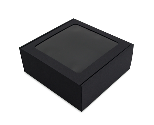 - Dovanų dėžutė, juoda, kvadratinė, su langeliu