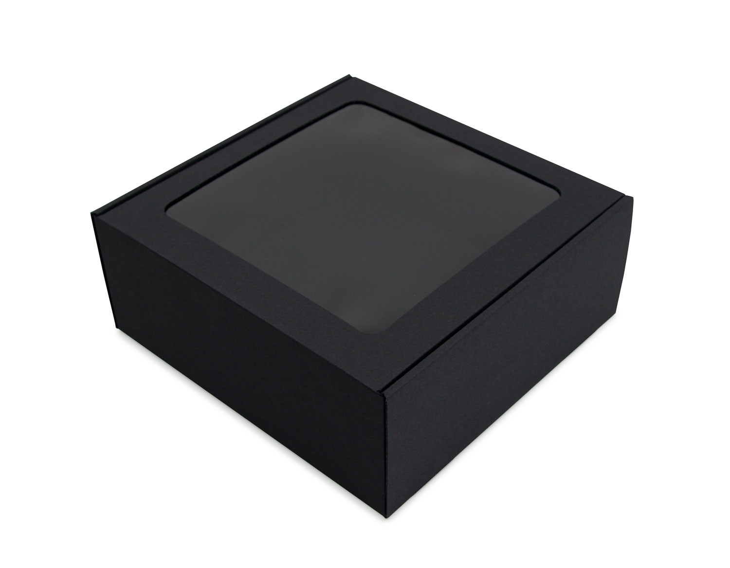 Dovanų dėžutė, juoda, kvadratinė, su langeliu