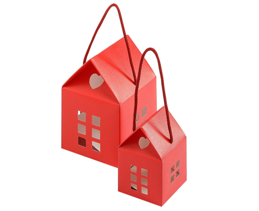 Dekoratyvinė universali dovanų dėžutė - namelis. Puikiai tinka pakuoti smulkioms dovanėlėms ar suvenyrams. Kabinkite dėžutes ant eglutės, statykite ant palangių, naudokite kitiems dekoravimo darbams. Į dėžutės vidų galima dėti Led žvakutę ar Led lemputes.• Dovanų dėžutė.