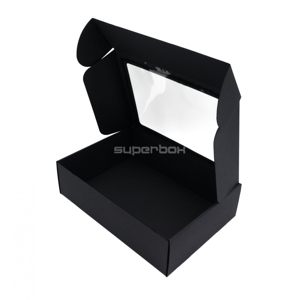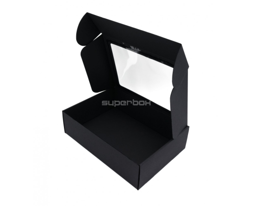- Juoda A4 formato dėžutė su PVC langeliu, 305 x 215 x 85