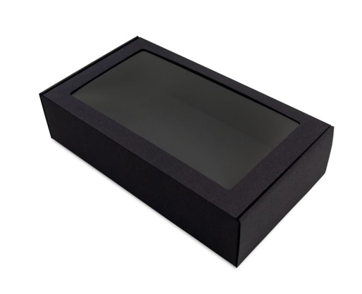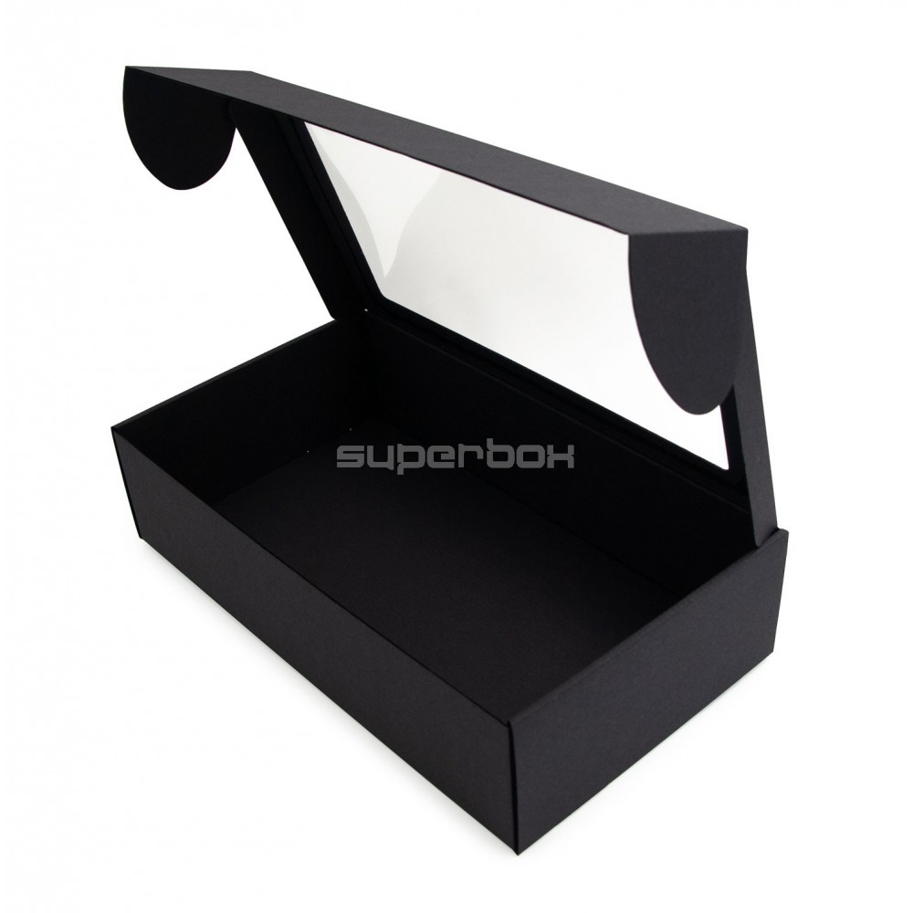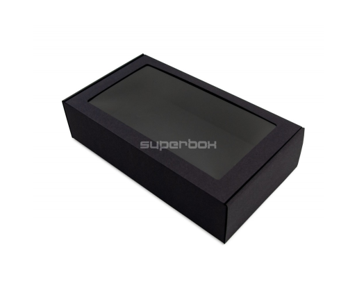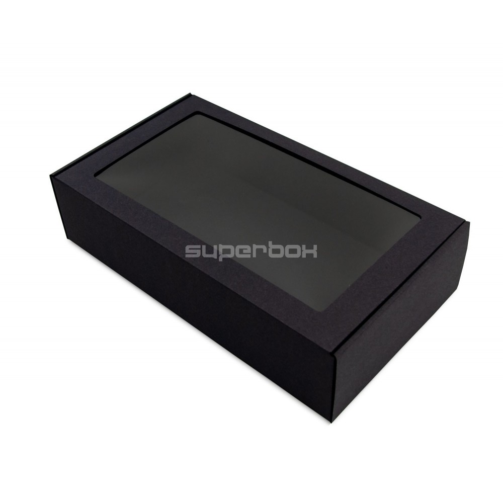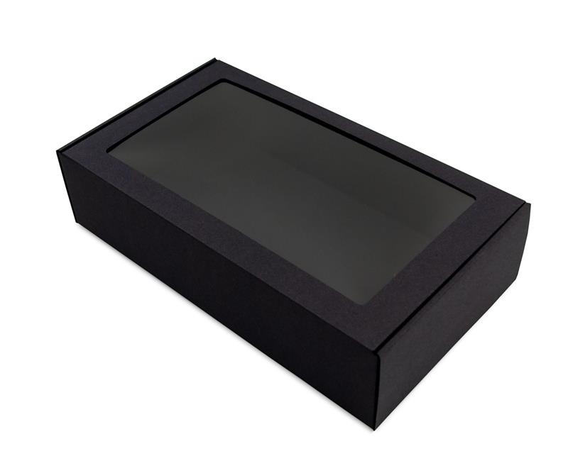 - Juoda prailginta dovanų dėžutė su langeliu, 340 x 195 x 85