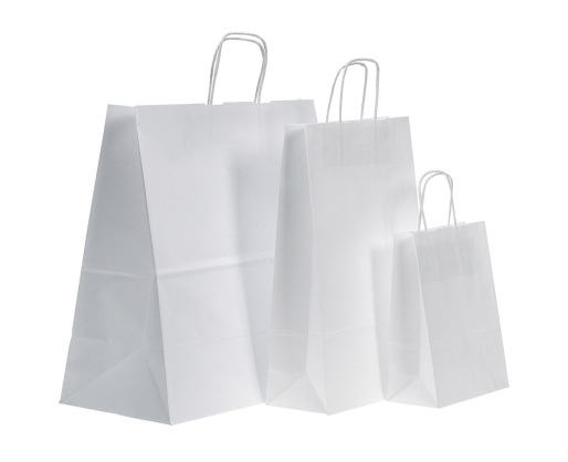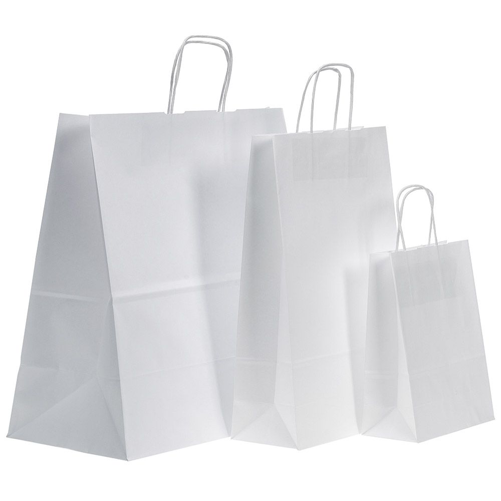 Twist tipo maišeliai pagaminti iš balinto, perdirbto kraft popieriaus. Su sukto popieriaus rankenėlėmis, įklijuotomis į vidų. Šie maišeliai puikus ir patogus pasirinkimas produkcijos ar dovanų pakavimui. Dėl savo natūralios išvaizdos tinkami dėti individualią spaudą, klijuoti lipdukus ar kitaip dekoruoti.• Maišeliai pagaminti iš: 90 g/m2 balto kraft popieriaus.