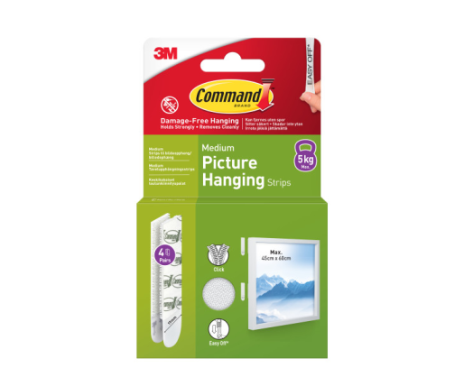 „Command Picture Hanging Strips“ yra novatoriškas sprendimas, leidžiantis saugiai ir nepažeidžiant paveikslų rėmelių bei meno kūrinių juos pakabinti. Jie tvirtai laikosi ir lengvai nuimami naudojant 3M „stretch release“ technologiją.