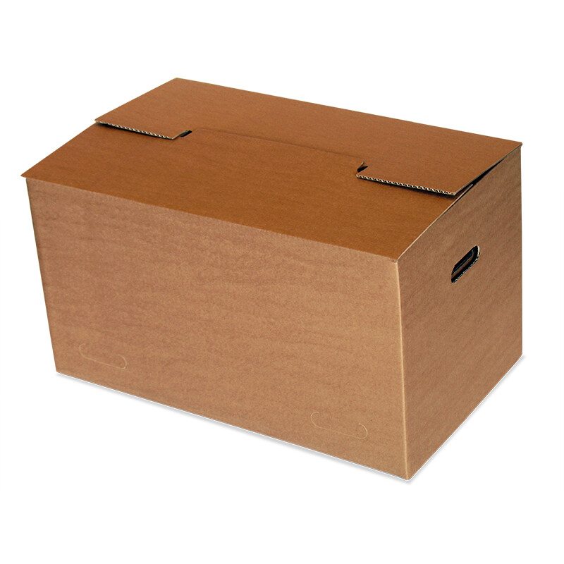Tvirta perkraustymo dėžė su dvigubu pagrindu ir ertmėmis iš šonų patogiai paimti, gali būti uždaromos nenaudojant lipnios juostos. Matmenys:620x370x340mm; rudos spalvos; 62017C