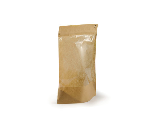 Maišeliai pagaminti iš aukštos kokybės rudo KRAFT popieriaus, Sandariai užsegami styginiu užspaudimu (Zip-lock), yra pastatomas dugnas, vidinė maišelio dalis laminuota, priekinė maišelio pusė su langeliu. Tinka pakuoti birius produktus: kavą, arbatą, džiovintus vaisius, riešutus, prieskonius, sėklas, šokolado gaminius, saldumynus ir kitus užkandžius.