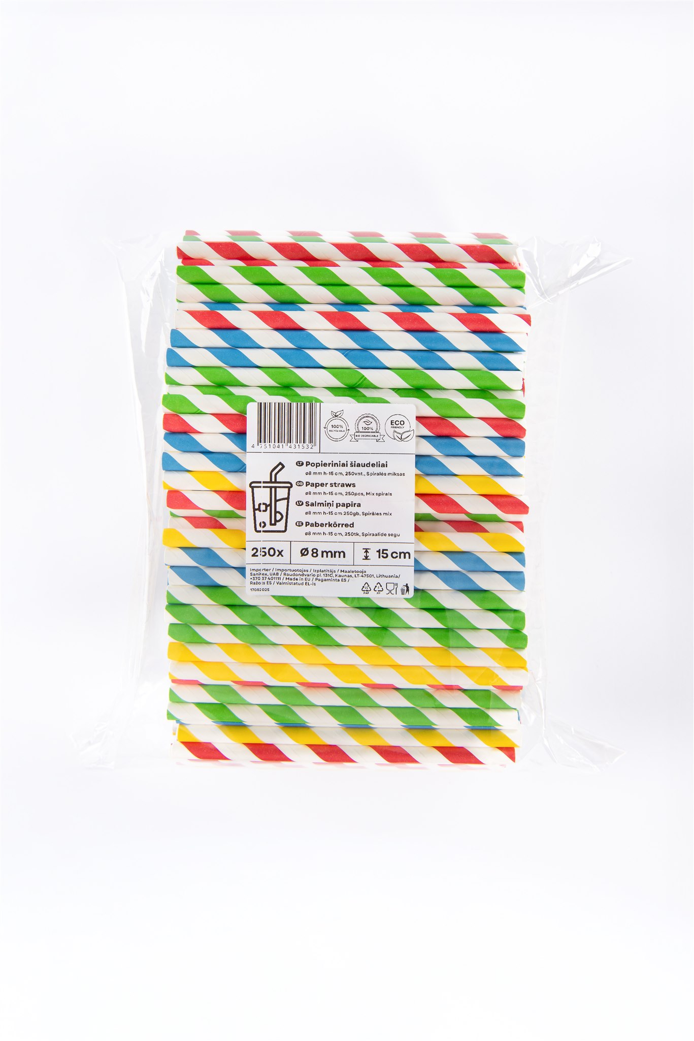 - Popieriniai šiaudeliai, spalvotos spiralės, D 8 mm, L 15 cm, 250 vnt