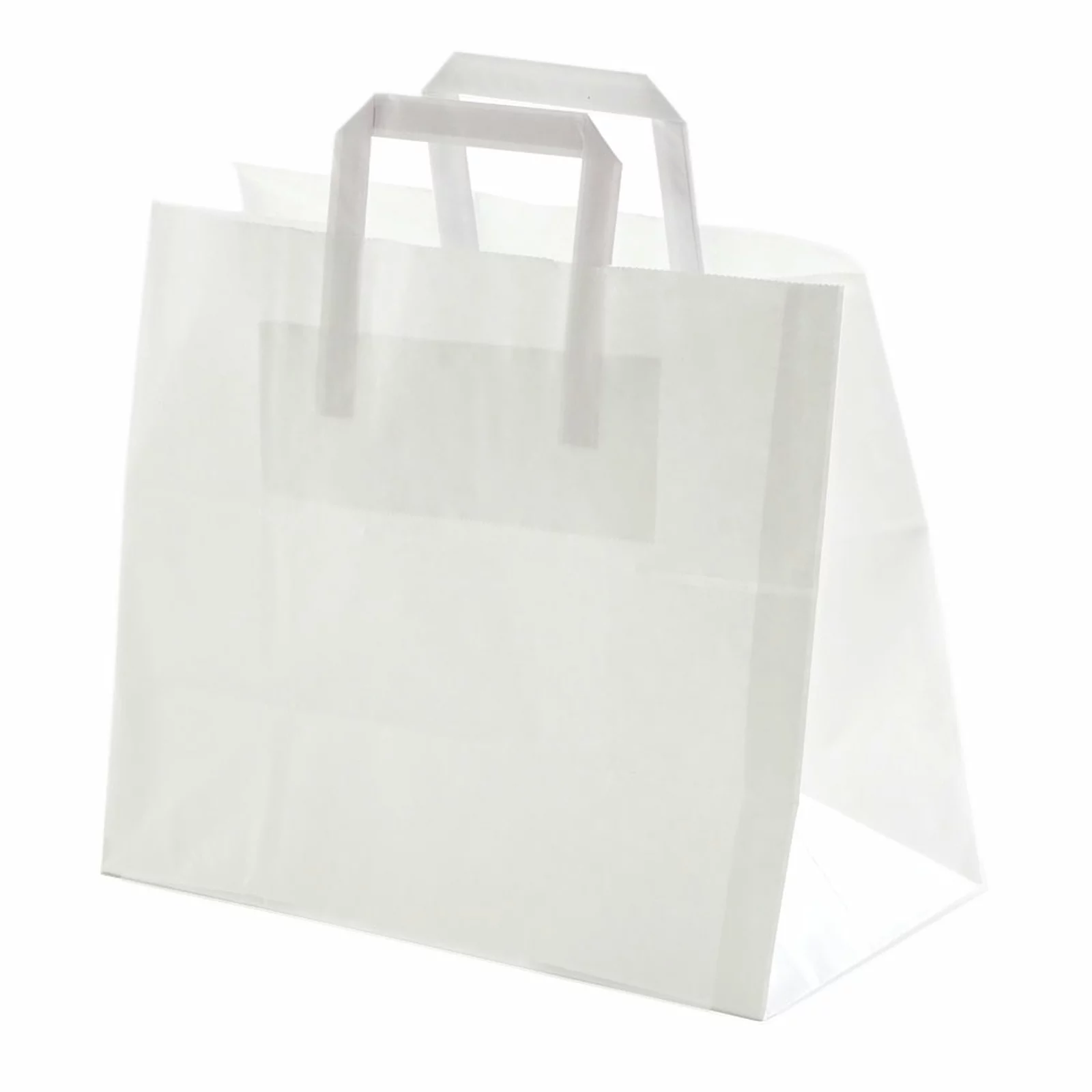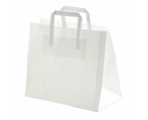 Baltas popierinis maišelis su rankenėle 400x180x390 mm (ilgis x plotis x aukštis). Tai ekologiškas maišelis, pagamintas iš 90g/m2 KRAFT popieriaus. Aukštos kokybės popieriniai maišeliai tinka įvairiems maisto produktams, verslo dovanoms, drabužiams ir kitoms prekėms pakuoti. Maišelių rankenėlės klijuotos viduje, gali išlaikyti iki 11 kg svorio.