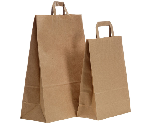 Flat tipo maišelis pagamintas iš rudo, perdirbto kraft popieriaus. Maišelis su popierinėmis rankenėlėmis. Šis maišelis puikus ir patogus pasirinkimas produkcijos ar dovanų pakavimui. Dėl savo natūralios išvaizdos tinkamas dėti individualią spaudą, klijuoti lipdukus ar kitaip dekoruoti.Prekės parametrai