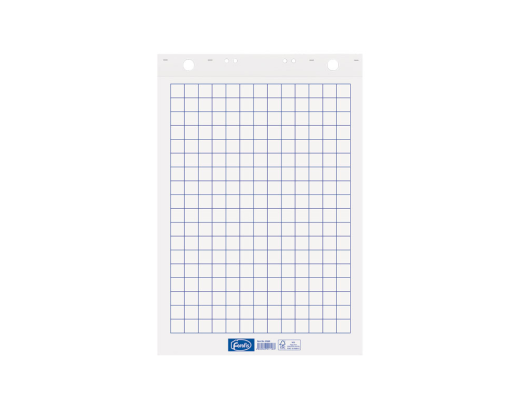 Bloknotas konferencijoms, 600 mm x 850 mm, 50 lapų, langeliais. Perforacija skirta tvirtinti bloknotui prie daugelio lentų modelių bei naudotiems lapams nuplėšti. Popieriaus svoris 60 gsm.