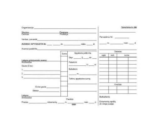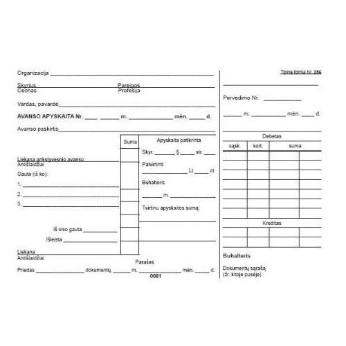 Avanso apyskaita A5, horizontali, 100 lapų