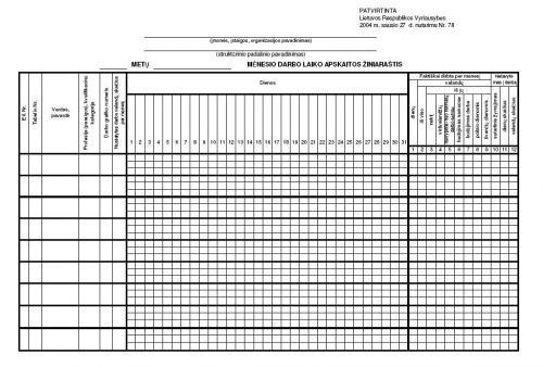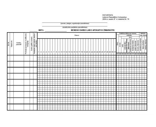 Darbo laiko apskaitos žiniaraštis A4