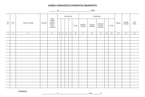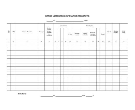 Darbo užmokesčio žiniaraštis A4 horizontalus